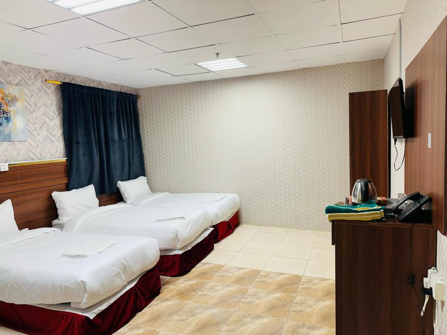 Our spacious Triple Bed Room is designed for comfort and convenience, ideal for families or small groups. Featuring three comfortable beds, modern amenities, and tasteful décor, this room ensures a restful stay after a day of travel or spiritual activities. Guests can enjoy a private bathroom, air conditioning, Wi-Fi, and a serene atmosphere for relaxation. Perfect for creating memorable moments together, this room combines functionality with a cozy, welcoming environment.